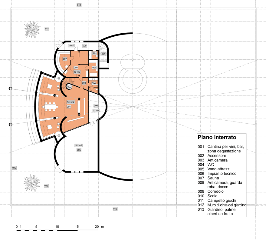 Piantina piano interrato - Casa ospiti / Zona intrattenimento: Dettaglio