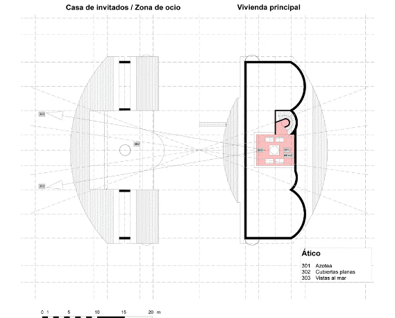 Considere el concepto CASA DEL SOL como un "juego de construcción": se pueden eliminar bloques individuales como, por ejemplo, la casa de huéspedes. También se puede cambiar la posición del domicilio familiar o de la casa de huéspedes. Elija la casa de sus sueños dentro de la serie CASA DEL SOL, de acuerdo con sus necesidades, a partir de 1.110m2. Para más detalles, haga clic en LAS VARIACIONES DE LA CASA DEL SOL. (Todas las imágenes y gráficos muestran CASA DEL SOL, modelo 2.500m2).